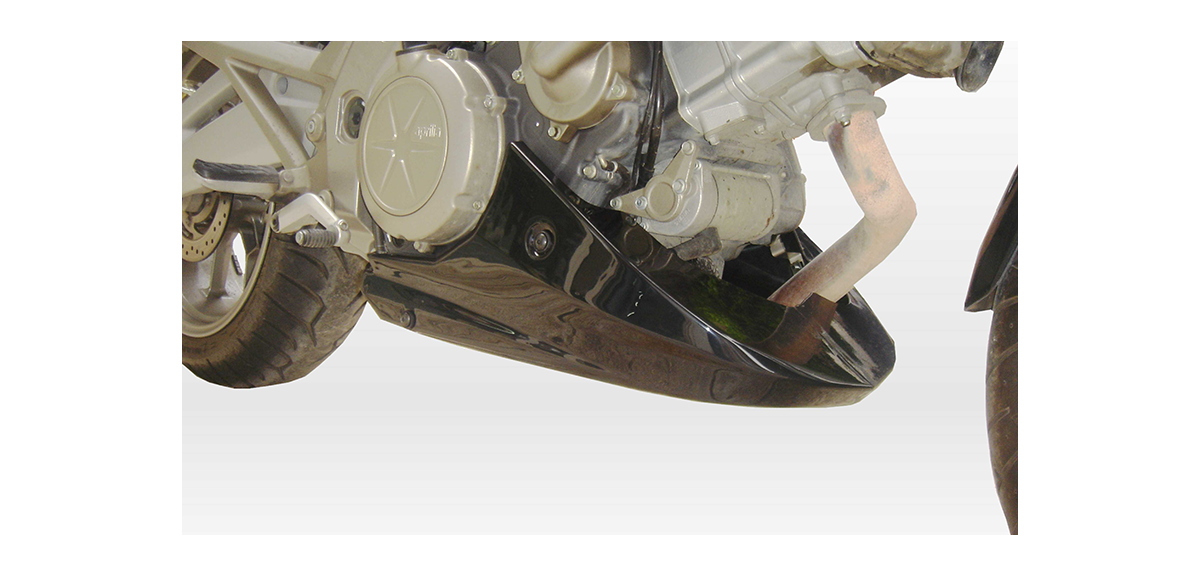 Engine Spoiler for Aprilia Shiver 750 Type 2. This Engine Spoiler protects against mud and other things that would otherwise get on the engine or the exhaust.
