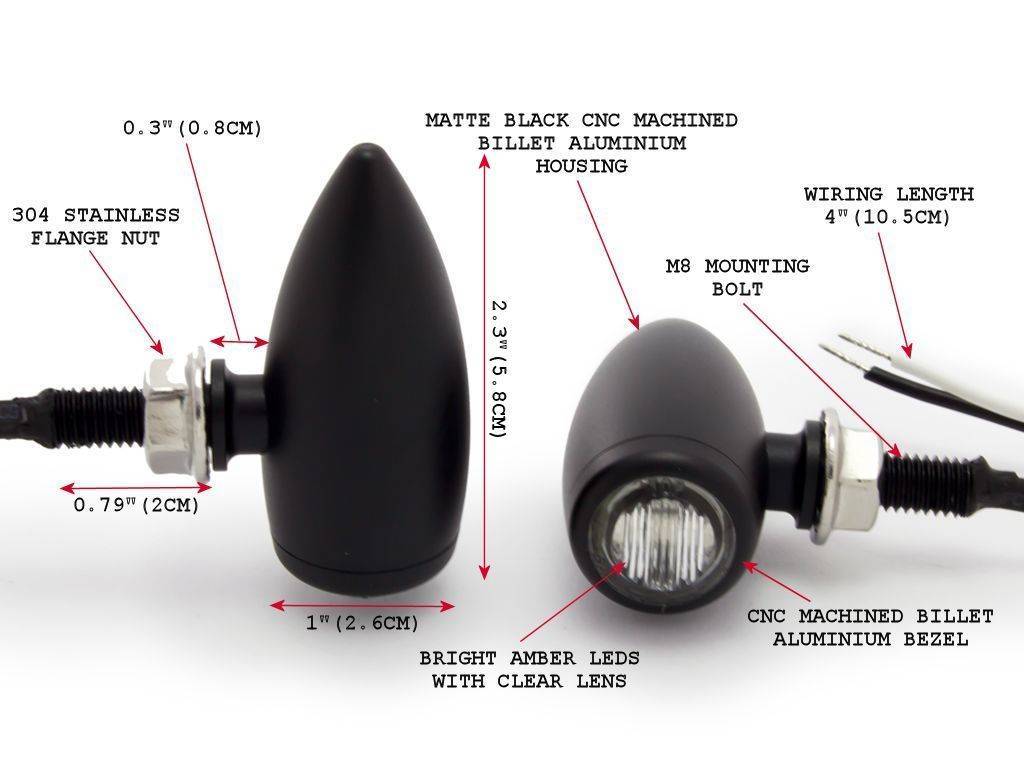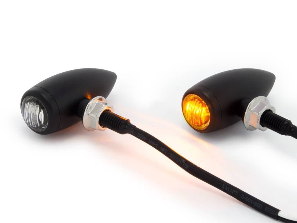 These high-quality turn signals are machined from a solid piece of 6061 billet aluminium. Internally, they feature bright LEDs and a classic-style clear lens. Will satisfy the fussiest of buyers.