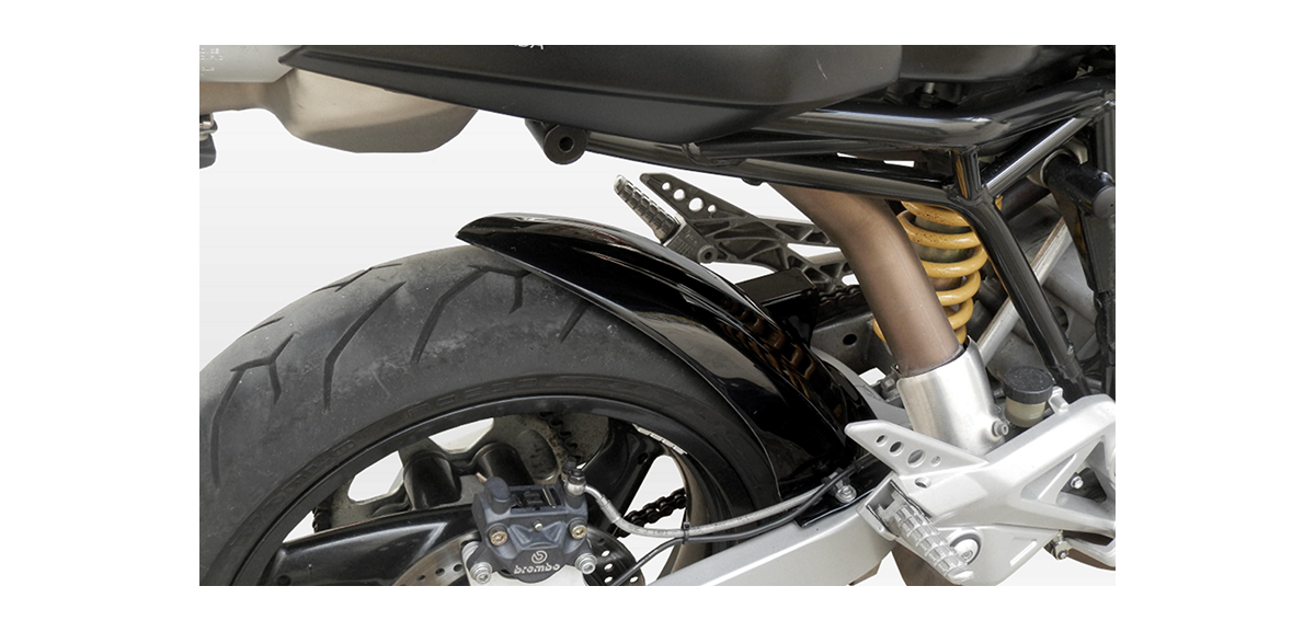 It is made of ABS plastic in glossy black, with an acrylic coating and UV protection. The rear Hugger can be easily mounted, the ABS plastic is also very easy to paint without further treatment.