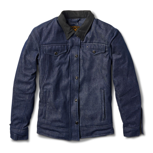 The RSD Redondo jacket is a great alternative to leather and features a fully aramid mid-liner for abrasion protection. The jacket is CE EN 17092:2020-AA Certified, equipped with CE level 1 armour and has a back protector pocket. The outer shell is a heavy-duty denim to give it that rugged trucker look, while the interior is a plush quilted poly for comfort. Features include a suede snap down collar, internal device.