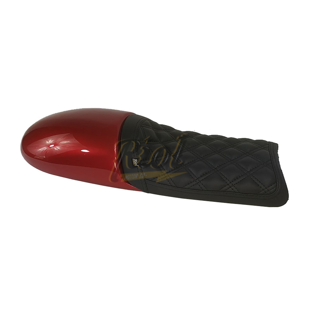 Seat made of high quality fiberglass, finished with primer to be painted. Seat made of special synthetic leather for motorcycles. Anchorage for original lock of the motorcycle. No modification of the chassis is necessary. Available in various colors and stitching.