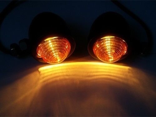 Set Old school Black & Transparent Bullet Turn Signals in black housing.