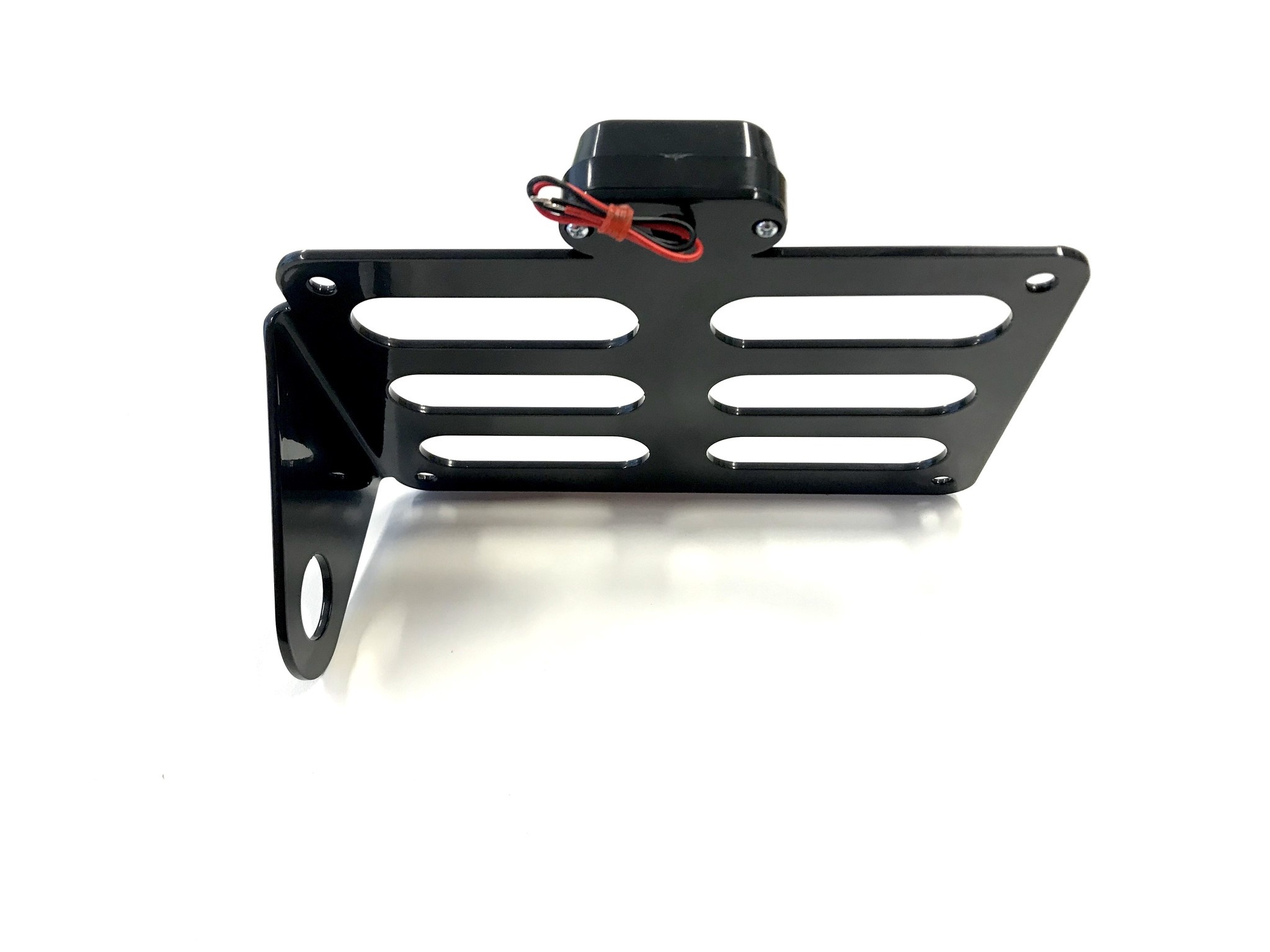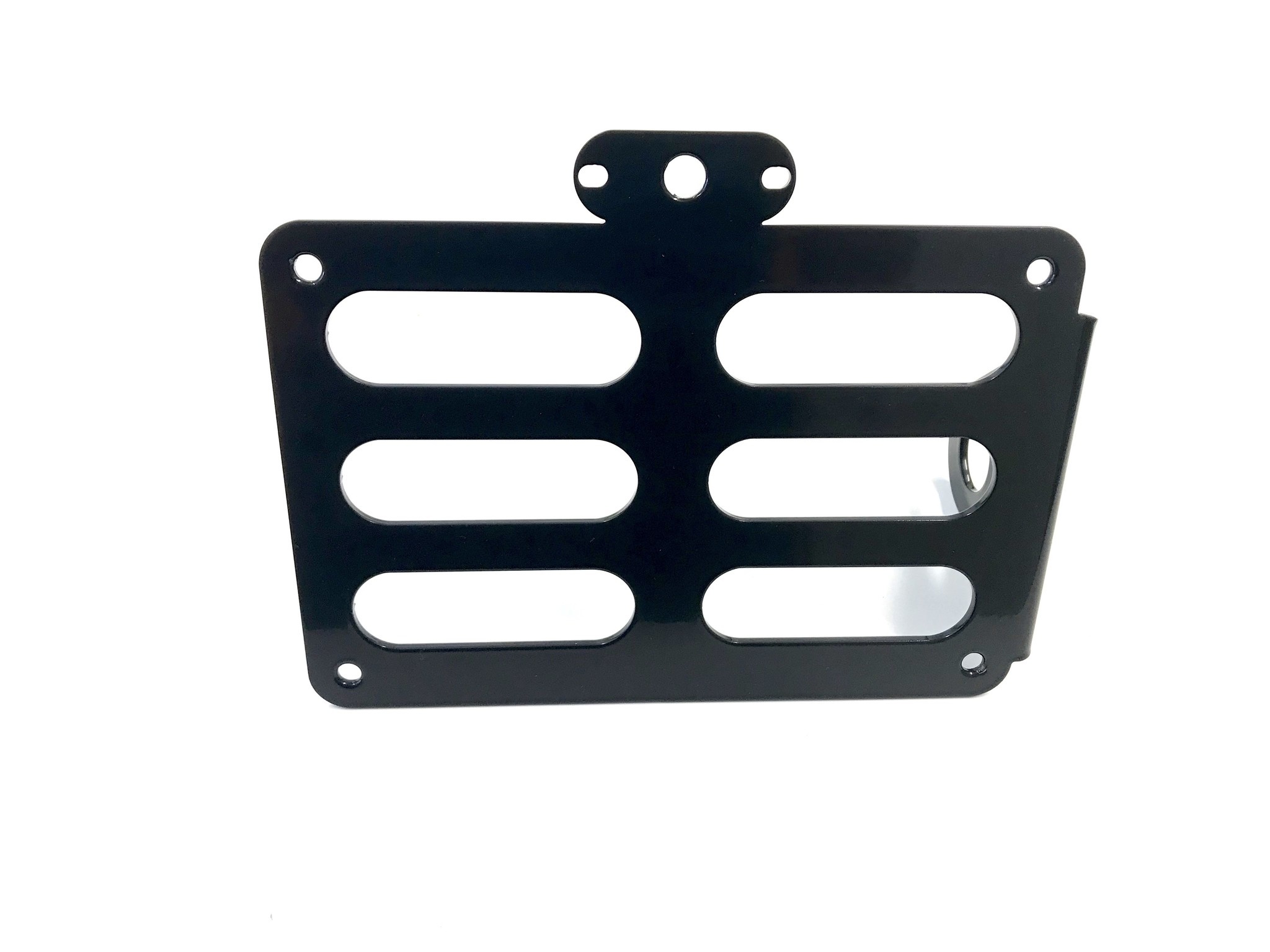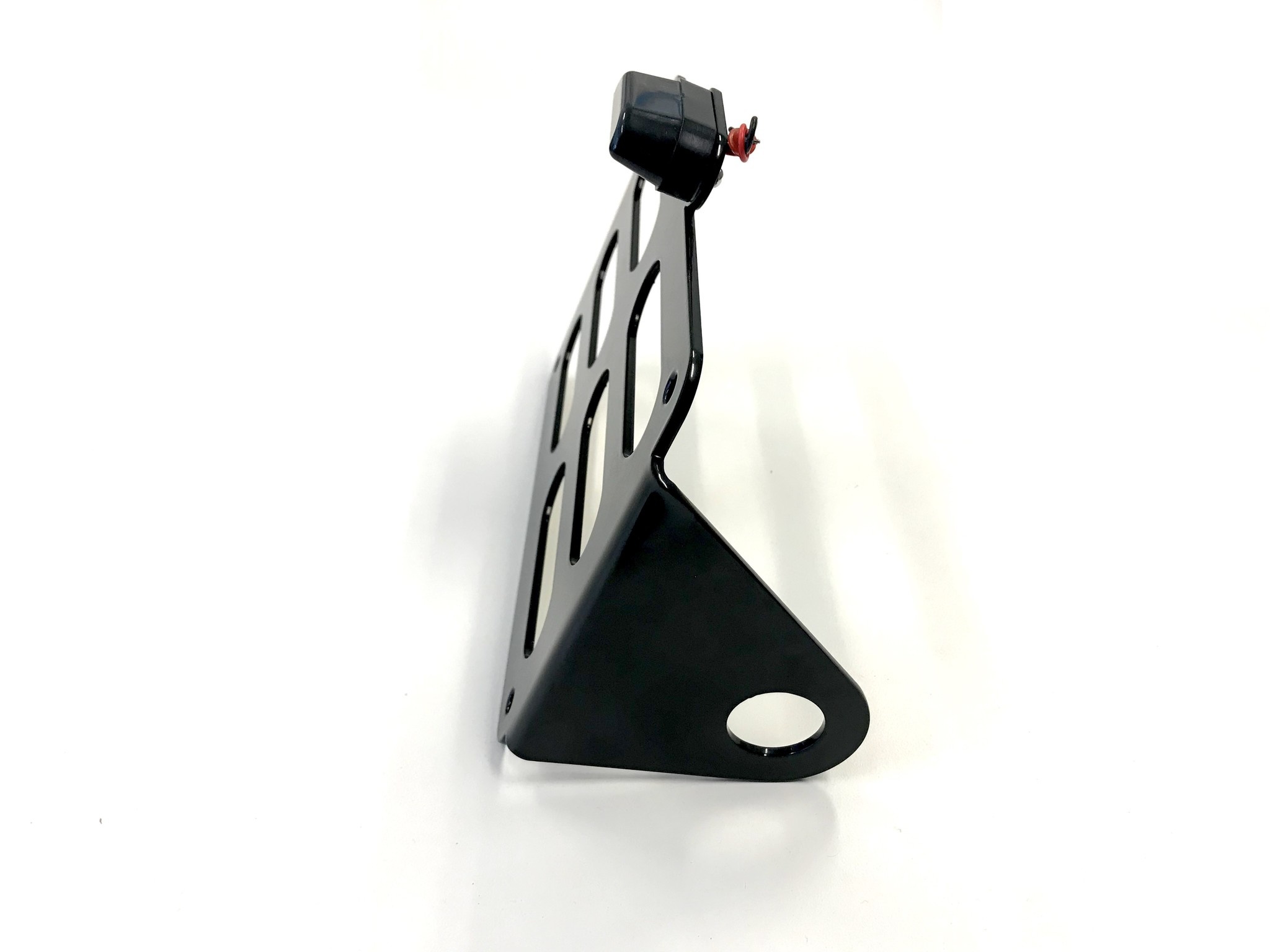 This Side Mount is made for Dutch and Belgian licence plates (210 mm x 140 mm). It is made of 5 mm steel. Superb Gloss-black coated.