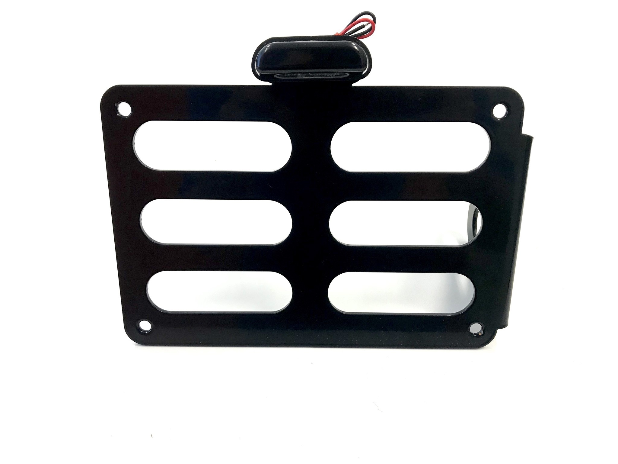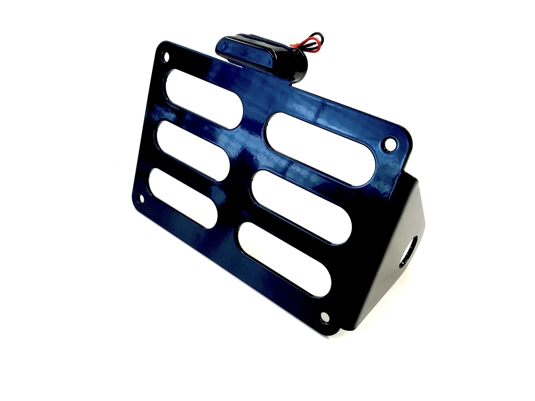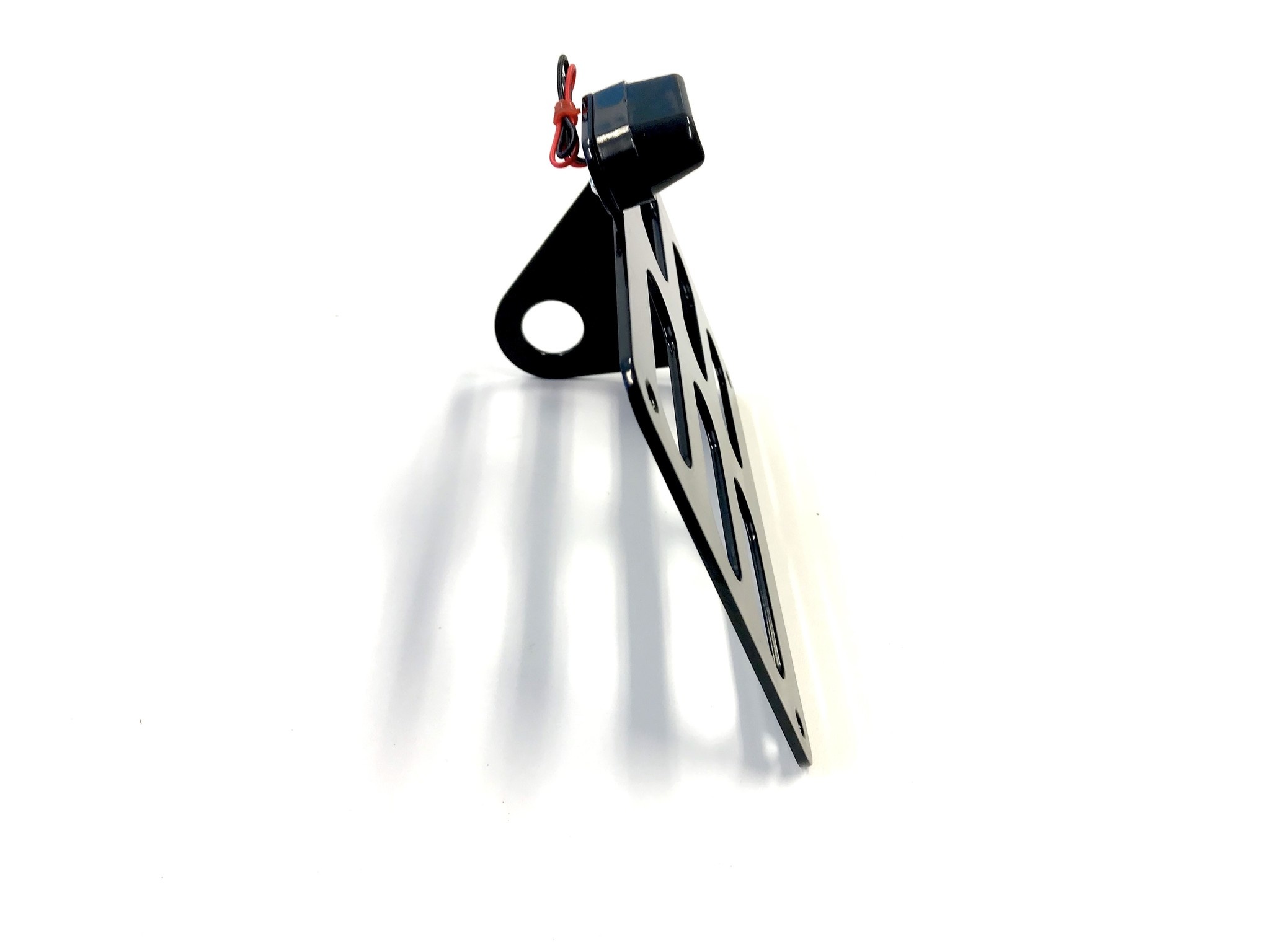 This Side Mount is made for Dutch and Belgian licence plates (210 mm x 140 mm). It is made of 5 mm steel. Superb Gloss-black coated.