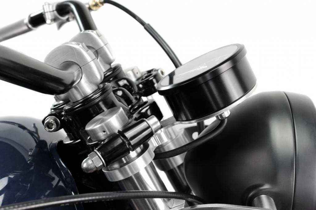 With the universal speedometer holder by Two Hands Motorcycles for the Motoscope Chronoclassic, your custom motorcycle will have a tidy front.