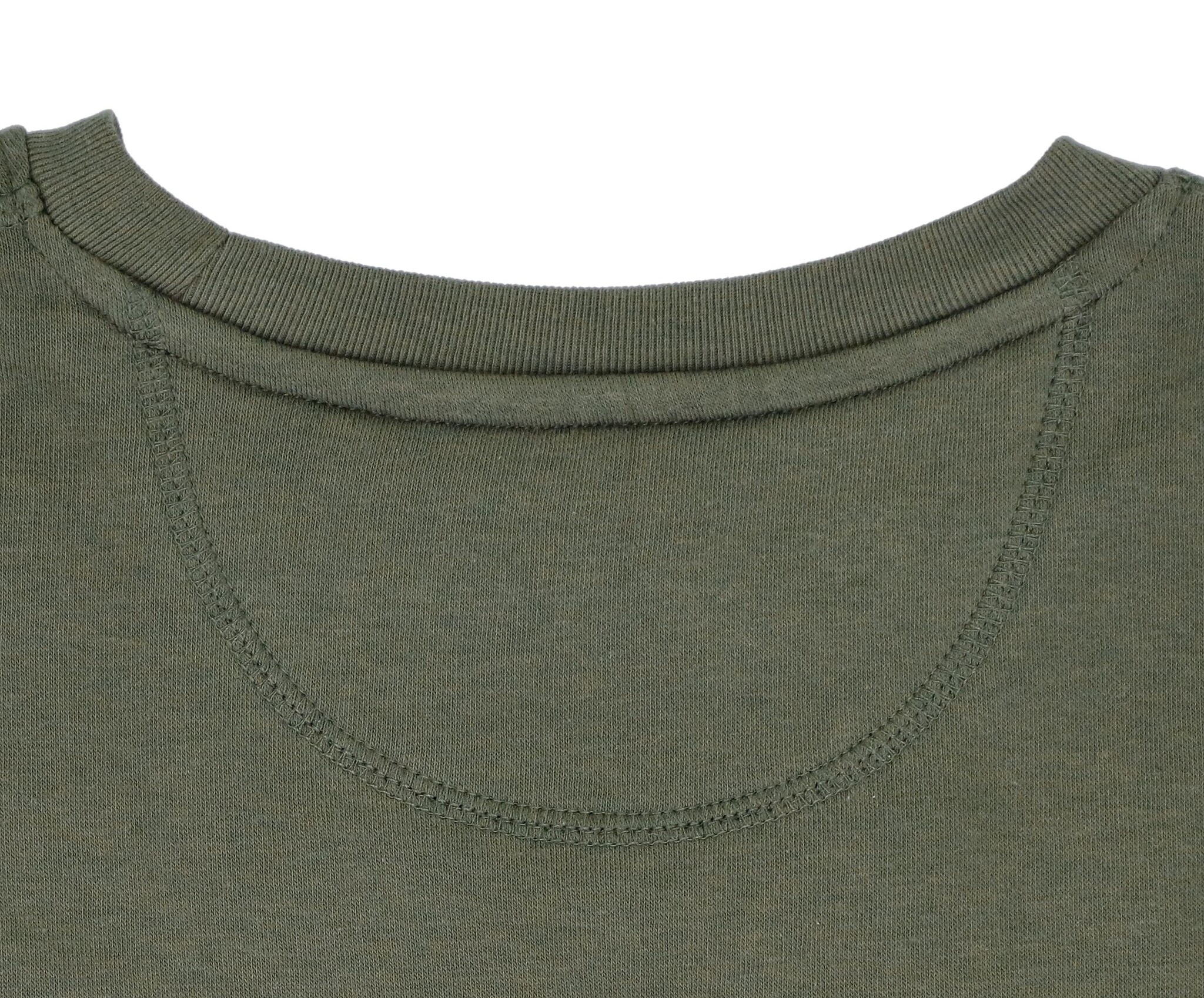 Fabric Composition: Made from 85% organic ring-spun combed cotton and 15% recycled polyester, the fabric has been washed, lightly sueded, and offers a soft feel. Weighing 300 g/m², the sweatshirt finds an ideal balance between warmth and lightness.