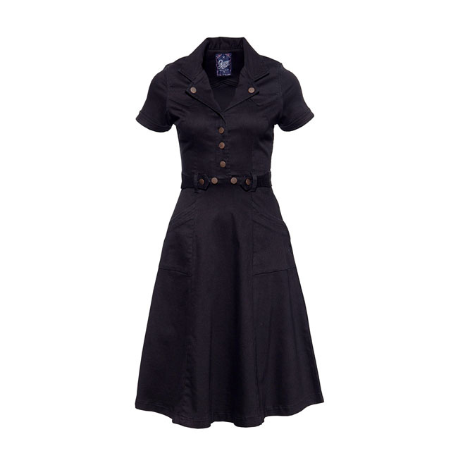 You like the wild and at the same time feminine style of the 50's? Then you've come to the right place with this swing dress by Queen Kerosin! The high-quality, robust jeans material is made of cotton with stretch, which ensures great wearing comfort despite the slim fit in the waist. The button fly in the front harmonises perfectly with the button-down lapel collar. Simply combine it with heels and you have an authentic vintage look that is sure to draw everyone's attention - whether on the dance floor or in everyday life!