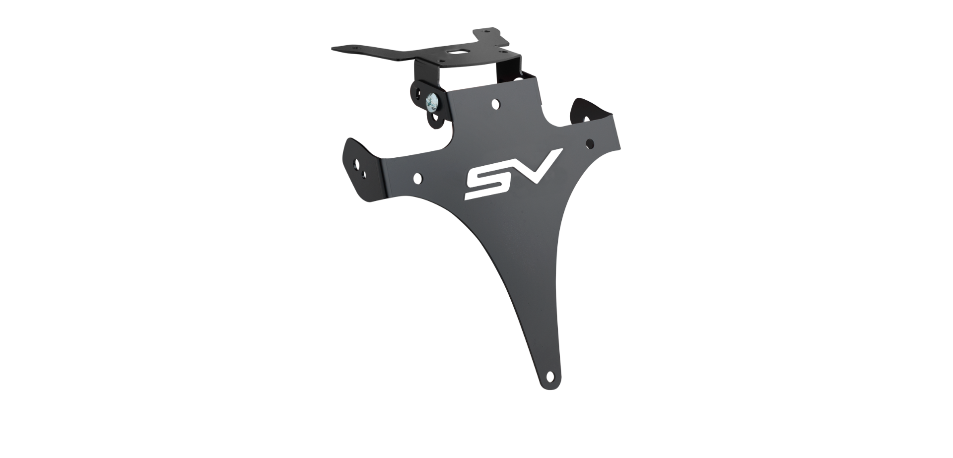 The license plate holder is made of 2mm DCP sheet metal and specifically designed for the Suzuki SV 650 16+.
