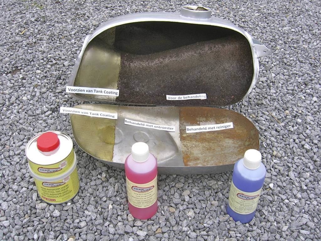 In order to guarantee a good result, you always have to do some preparation on your tank. Before you apply the sealant the tank should be absolutely dry, free of grease and almost free of rust. "TANK CURE" offers you products that will assist you in the preparation of the tank.