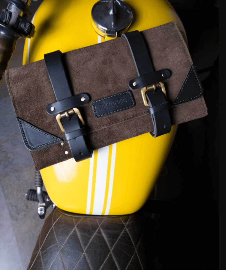 It can easily be mounted to the motorcycle so you don't need to pack it in a bag. The special water-resistant suede ensures that weather will have little effect on the bag. Here's what it contains :
