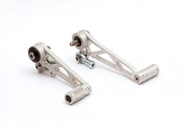 Triumph Thruxton 04> Shift and Brake Pedal, long Black/Silver with an ABE certificate. Please check whether your vehicle is registered in the ABE or the parts certificate.