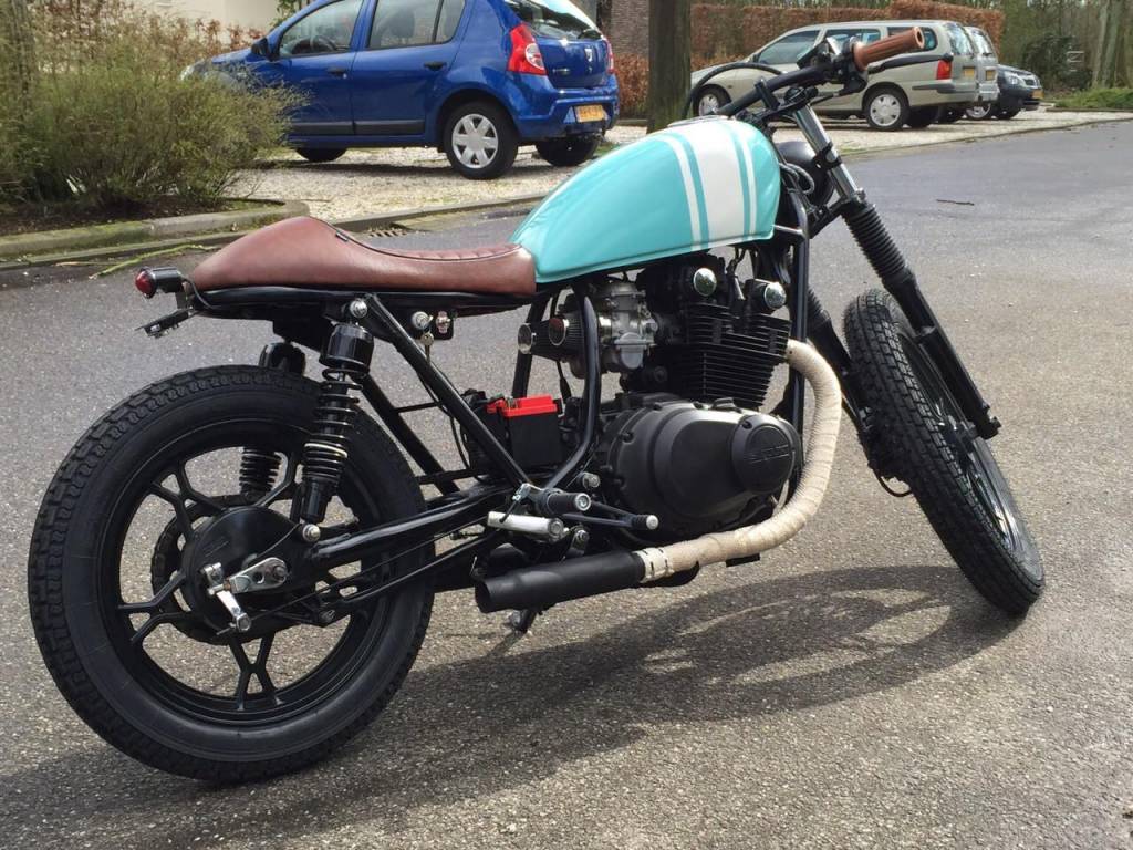 The seats are made of PU (Skai) leather because this material has a higher resistance to rain and sunlight. As you might have noticed, it also makes the seat more affordable. The quality is beautiful and is a real highlight to every Cafe Racer!