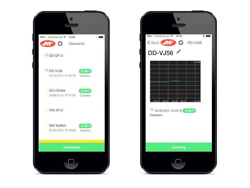 Met de JMP Battery Monitor en de gratis Apple- of Android-app kunt u de laadstatus van uw batterij snel en eenvoudig controleren, omdat alleen met een stabiele, positieve lading van de batterij de volledige capaciteit en bruikbaarheid is gegarandeerd.
