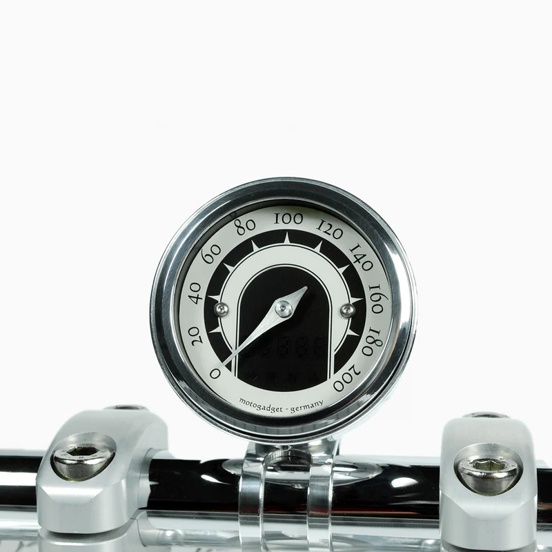 Le Motogadget Motoscope Tiny Streamline Cup - Polished est utilisé pour monter tous les compteurs de vitesse analogiques de la série Tiny sur le guidon.