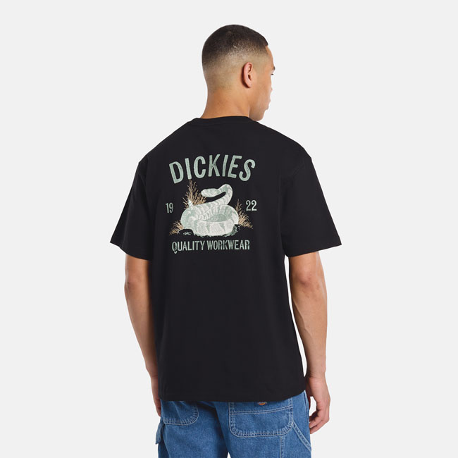 Le t-shirt Dickies Snake SS est un modèle décontracté en jersey 100 % coton. Il arbore le logo Dickies western en forme d'arche sur la poitrine gauche, un grand motif de serpent à sonnettes au dos et une étiquette Dickies tissée à l'ourlet. Un t-shirt en coton d'inspiration workwear, conçu pour être porté au quotidien.