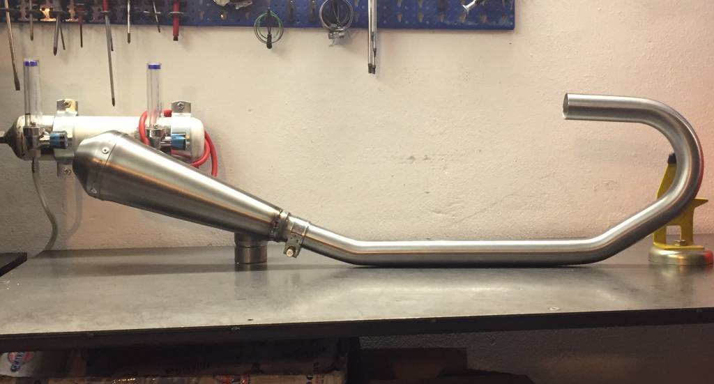Beau système d'échappement en acier inoxydable fabriqué à la main.