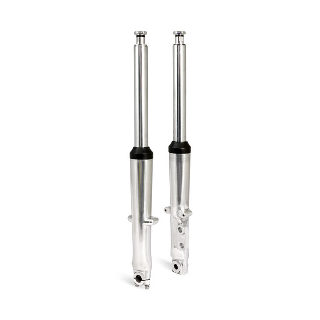 - Kit complet comprenant des tubes de fourche chromés durs, des glissières inférieures en aluminium avec tous les éléments internes et des bouchons de fourche.