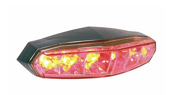 Feu arrière à LED Koso universel avec feu de stop et éclairage de la plaque d'immatriculation intégrés. Souvent utilisé sur les motos et cyclomoteurs. Sa petite taille rend son installation très facile.
