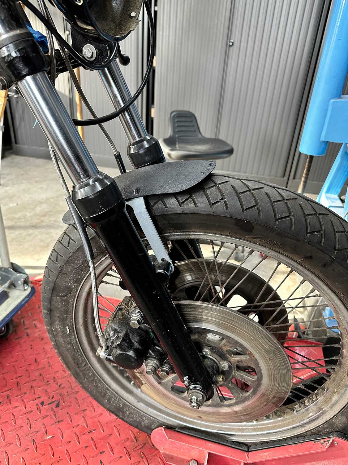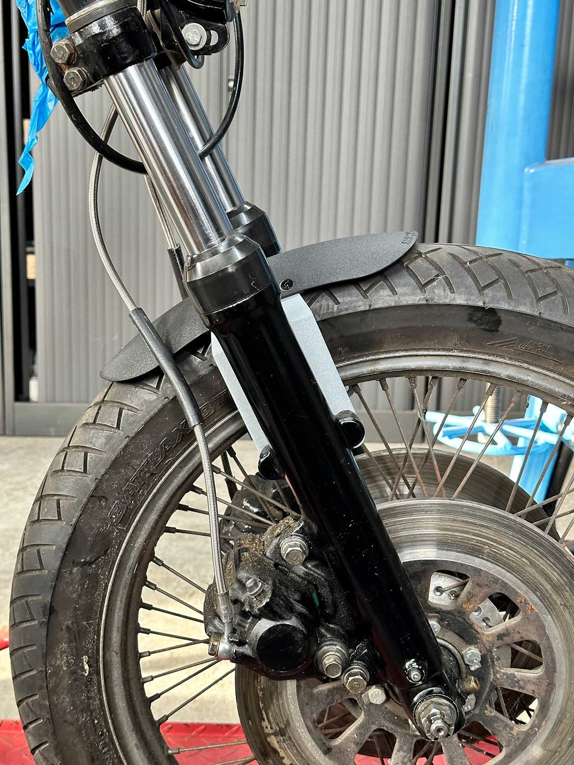 Ces garde-boue avant magnifiquement finis sont spécialement conçus pour la Yamaha SR500 1978-1981. Les garde-boue noirs sont très soignés grâce à la finition texturée. Les supports sont en acier inoxydable de 3 mm et peuvent être peints en couleur si vous le souhaitez. Comme les supports ont un trou fendu, le garde-boue est réglable en hauteur.