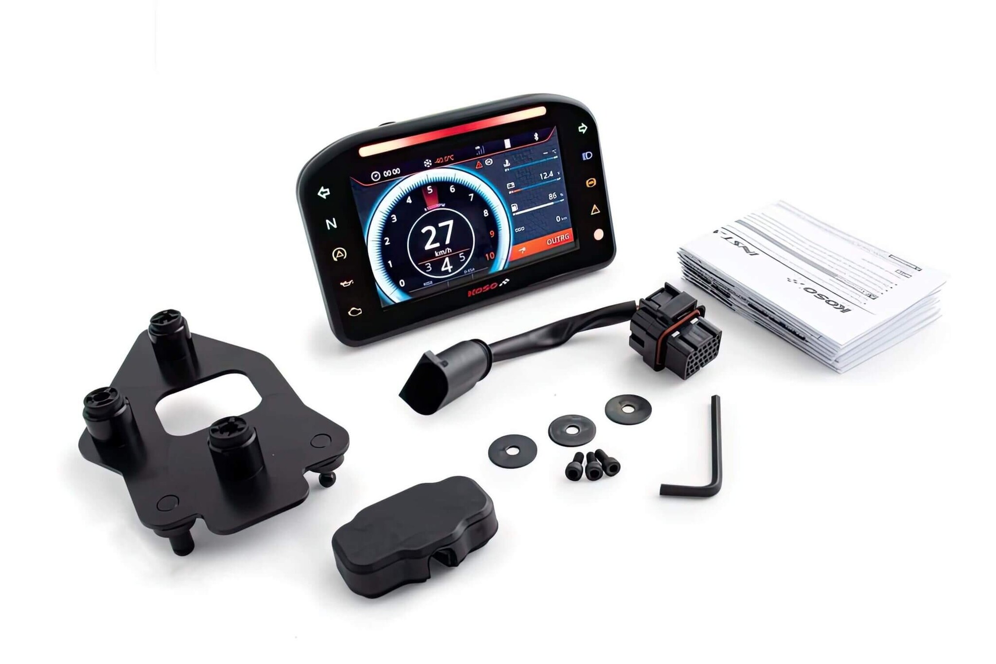 Le nouveau compteur multifonction RX5 avec écran TFT est un dispositif prêt à l'emploi. Ce compteur simple à installer donne à votre moto une apparence unique tout en offrant un large écran pour une meilleure convivialité. Grâce à la fonction Bluetooth® du RX5, vous pouvez connecter votre téléphone pour afficher un certain nombre de fonctions, notamment le système de navigation, les appels entrants, l'heure d'arrivée et bien plus encore. Ce compteur vous donnera toutes les informations dont vous avez besoin avec ses 10 voyants lumineux, sa vitesse, son odomètre, son tripmètre, son compteur horaire, son compteur de carburant, sa tension, son horloge et son chronomètre.
