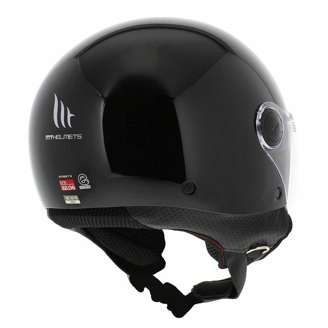 Le modèle d'entrée de gamme de MT est un casque jet léger d'un excellent rapport qualité-prix. Le casque STREET à la mode, disponible en blanc, noir mat et noir, est autorisé à circuler sur la voie publique par la norme ECE 22.06, comme tous les autres casques MT.