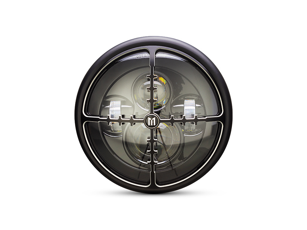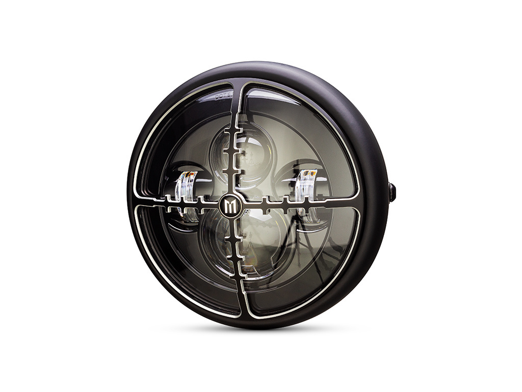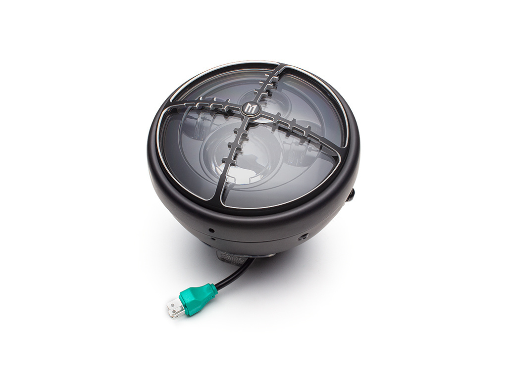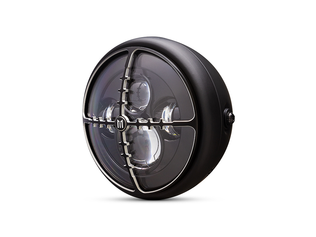 Phare de projecteur multi-LED Cross Hair de 7 ". Viser quelque chose de cool? Eh bien, ce phare unique est d'un niveau élevé et très brillant. Il a un style classique et est montures latérales et comprend un insert LED multi-projecteur et une croix en alliage usiné CNC Housse design Hairs Grill.