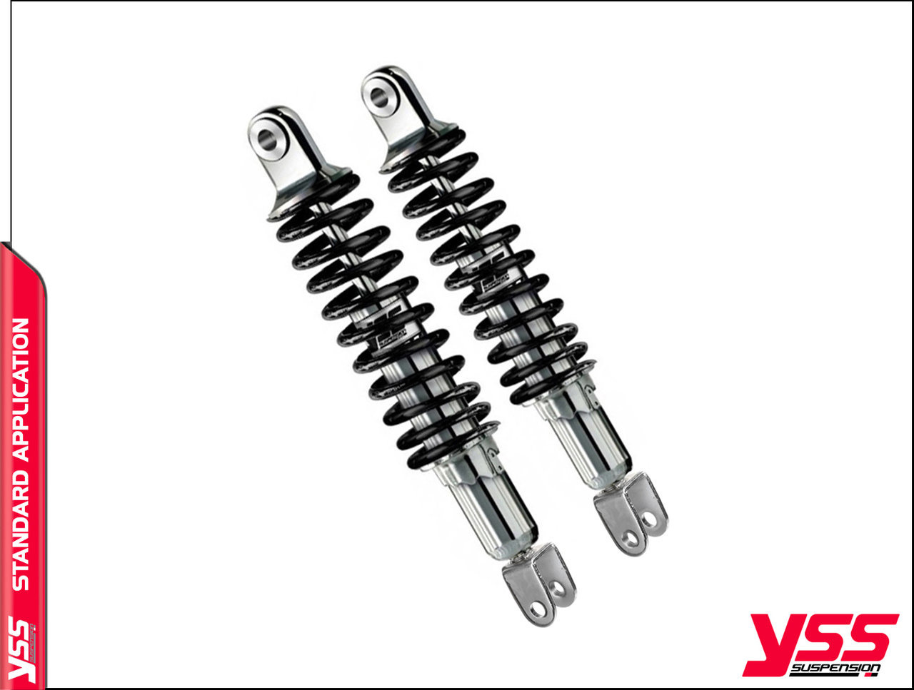 Il s'agit d'un simple amortisseur hydraulique normal et non d'un amortisseur assisté par gaz. La version standard est dotée d'un corps chromé, de ressorts hélicoïdaux noirs mats et de pistons de 30 mm.
