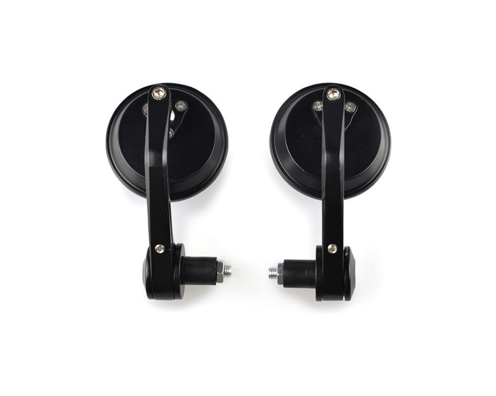 Rétroviseurs noirs pour guidons de 7/8" ou 22 mm. Ces rétroviseurs CNC universels sont fabriqués en aluminium de haute qualité et ont fière allure sur tous les Cafe Racer. Le prix est par jeu de deux pièces.