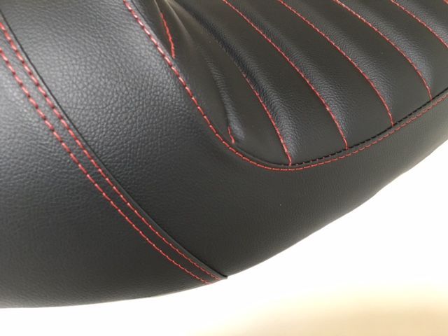 Selle Style SR Tuck 'N Roll noir & rouge - édition limitée. Vous pouvez utiliser cette selle sur un Brat comme sur un Café Racer ! Destinée au modèle SR400, elle convient aussi pour les 500.