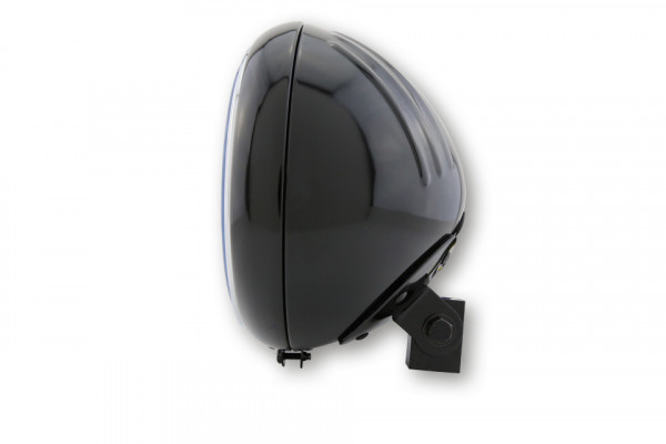 7 "Yuma 1 Headlight Bottom Mount- Gloss Noir. Ce phare de haute qualité et marqué E, a une très belle finition et un boîtier en métal. Le projecteur hémisphérique est également robuste et facile à installer.