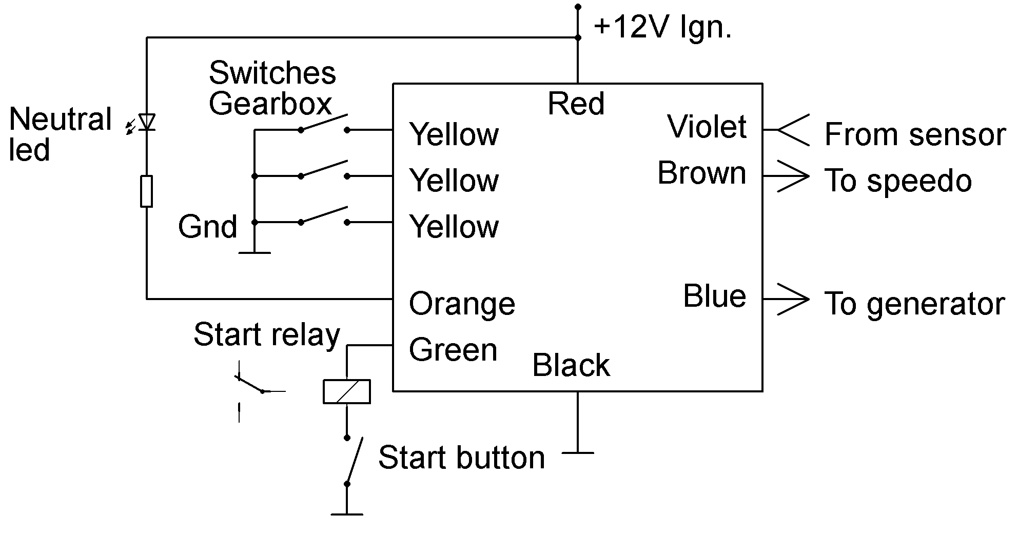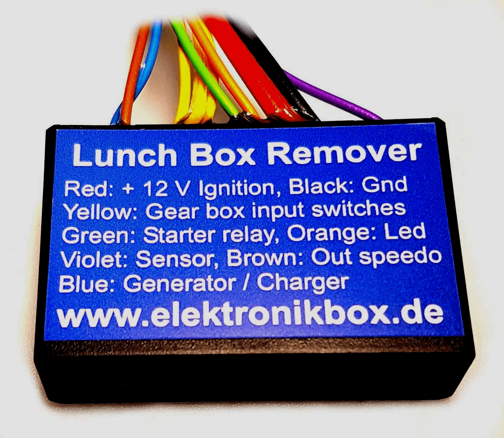 La Lunchbox - Remover possède une commande de commutateur de neutre intégrée avec une sortie pour le relais de démarreur et le voyant du neutre. Une résistance de charge virtuelle pour le système de charge est mise en œuvre et le signal du capteur de vitesse est amplifié de 0,2 à 8 volts, ce qui permet la mise en œuvre des vitesses les plus élevées du marché secondaire de votre moto. Ce module permet de retirer plus facilement l'ancien speedo "lunchbox" et le harnais volumineux d'origine.