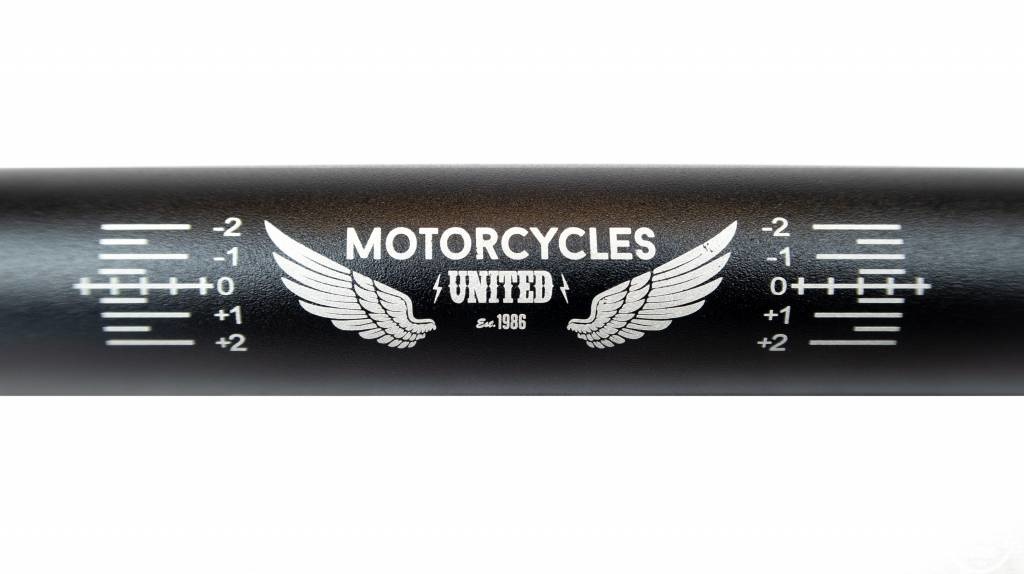 Guidon Fatbar "Motorcycles United" en aluminium noir