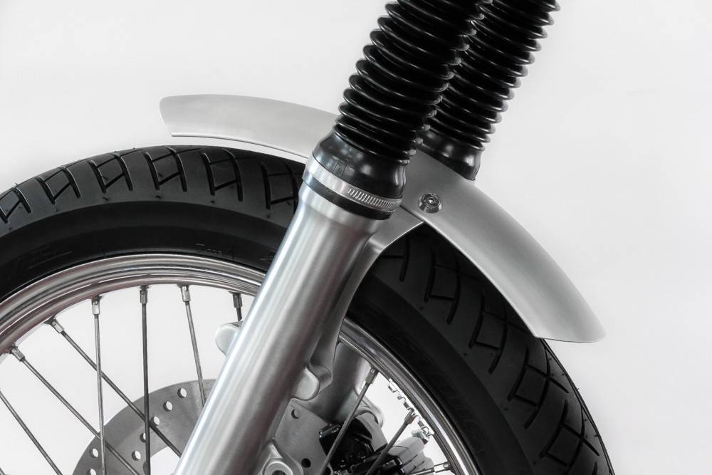 Il s'agit du garde-boue le plus versatile qui soit. Il peut s'adapter à n'importe quel type de moto personnalisée. De plus, pour garantir une finition raffinée et authentique, l'intégralité du garde-boue est satinée. Toute la structure du garde-boue est très stable afin de résister au maximum aux torsions de la fourche. Grâce à son montage haut, vous pouvez très bien l'utiliser pour un usage tout-terrain.