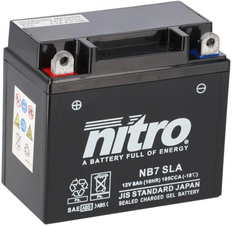 La dernière évolution en matière de batteries est la batterie à régulation par soupape et à charge humide. Grâce à une technologie très innovante, ces batteries étanches offrent une capacité de démarrage supérieure pour un volume réduit. Elles utilisent la même technologie de recombinaison de gaz avec soupapes de purge que les batteries sans entretien, mais la principale différence réside dans le fait qu'elles sont livrées étanches et déjà remplies d'acide. Grâce à la technologie AGM GEL (Absorbent Glass Matt), ces batteries sont conçues pour une utilisation dans toutes les positions. Modèle YB7.