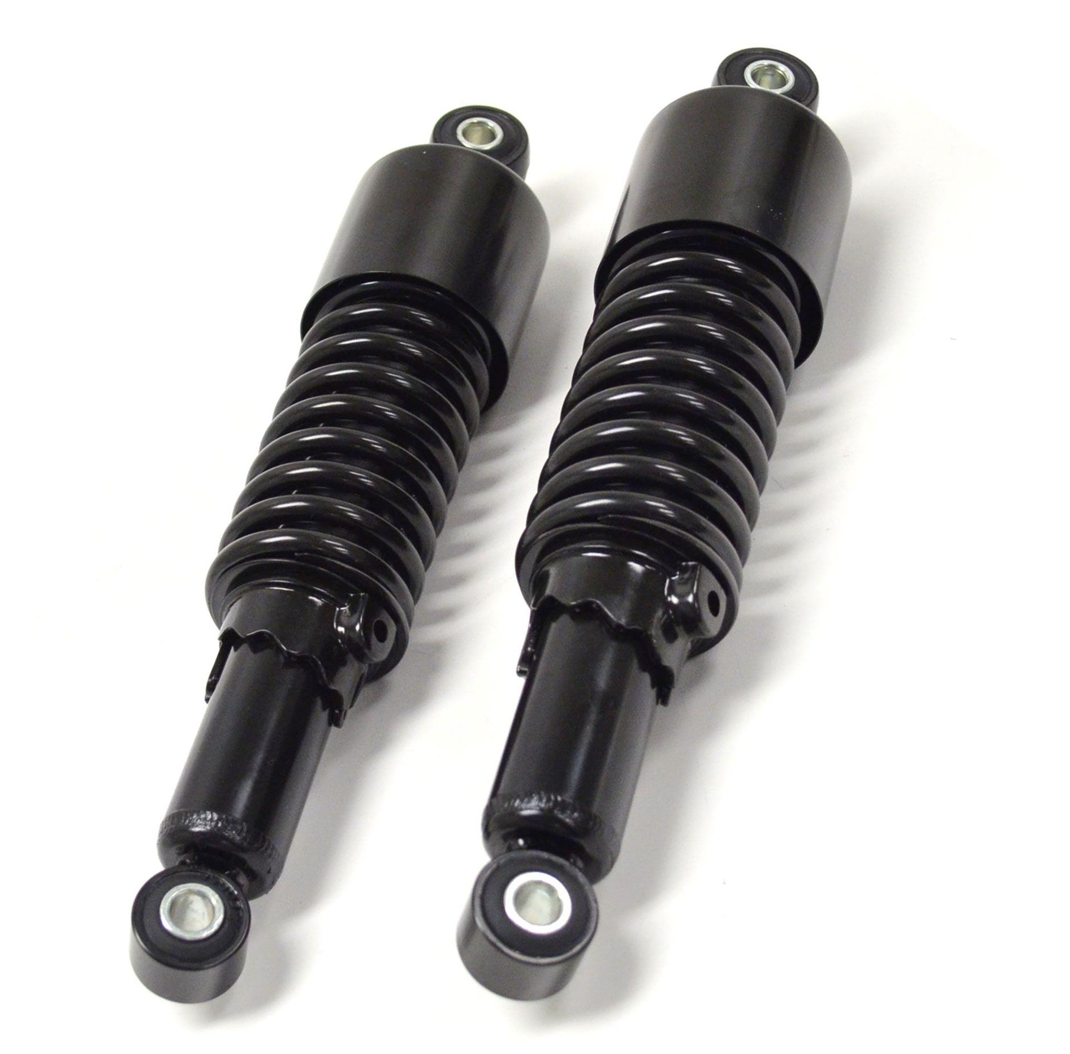 289MM Custom Shorty Shocks Chrome of Black Eye / Eye. 11,4 "(289 cm) lang van montagepunt tot montagepunt. Een geweldige manier om je Cafe Racer of Bobber uit de jaren 70 of 80 te laten zakken. De voorbelasting is in 5 standen verstelbaar met een klassieke oplopende stelmoer. - 11,4" Oog in oog met korte bovenkap . - Bovenste bus: 10 mm binnendiameter x 21 mm. - Onderste bevestiging: 10 mm binnendiameter x 21 mm.