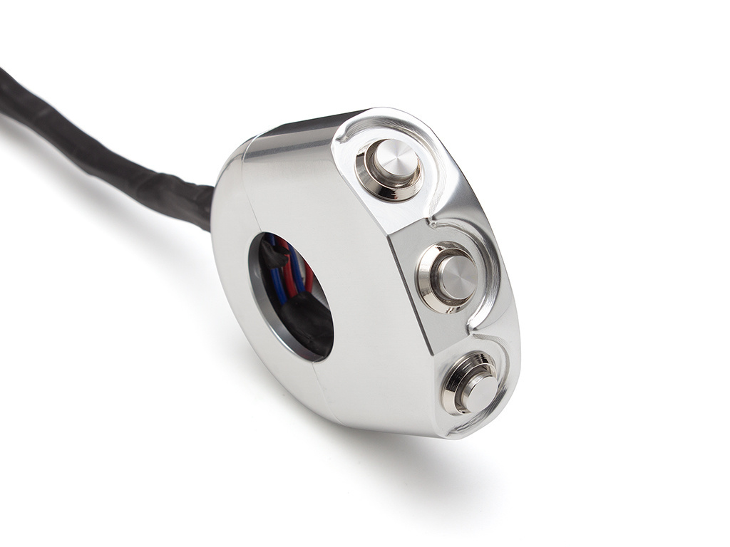 Hoogwaardige stuurmontageschakelaar met een combinatie van aan / uit en momentele schakelfuncties. Deze schakelaar kan aan de linker- of rechterkant van uw stuur worden gemonteerd door hem simpelweg om te draaien. Gemaakt van CNC gefreesd T6061 Billet Aluminium met prachtige lijnen en een foutloze afwerking.