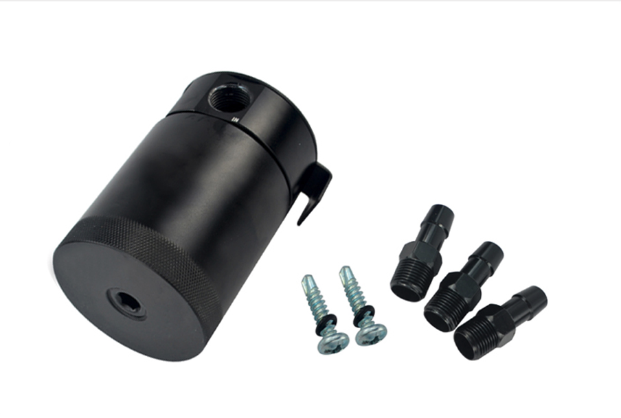 3-poorts aluminium Oil Catch Tank zwart