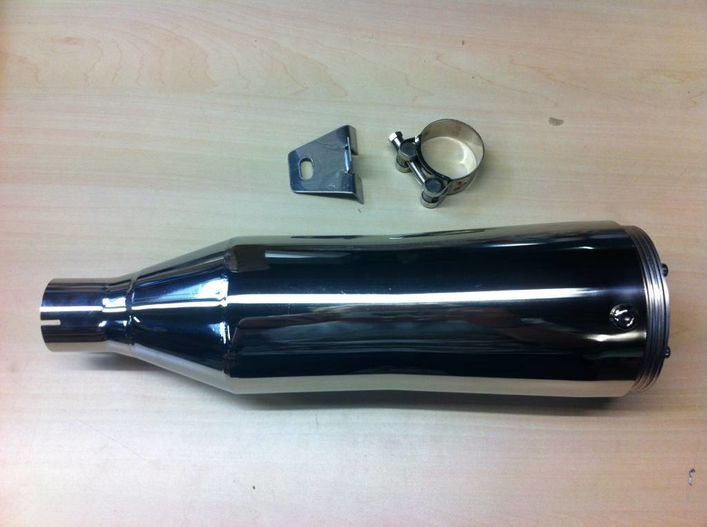 Universele uitlaat met een lengte van 35cm. Kan gemonteerd worden op uitlaatpijpen/uitlaatbochten van 38mm. Het mooie aan deze demper is dat je de plaatjes aan het uiteinde weg kan halen, waardoor de demper het geluid minder dempt. Erg gemakkelijk naar wens af te stellen dus!