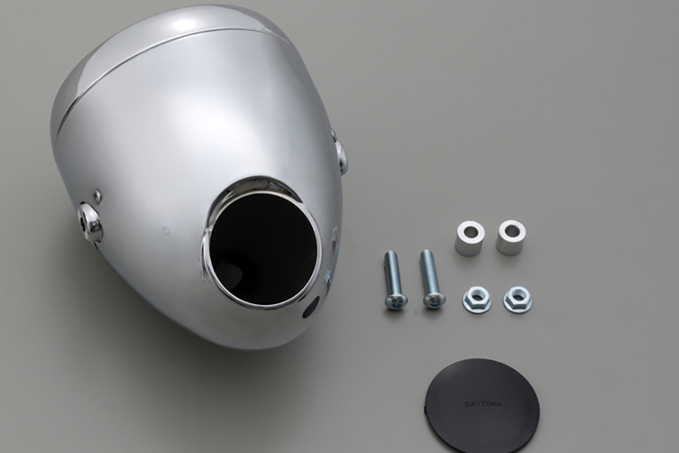 De koplamp heeft een uitsparing in de behuizing voor montage van een snelheidsmeter of toerenteller met 60 mm Ø (bijv. DAYTONA VELONA). Als er geen snelheidsmeter wordt gebruikt, kan de meegeleverde afdekkap in het gat worden gestoken.