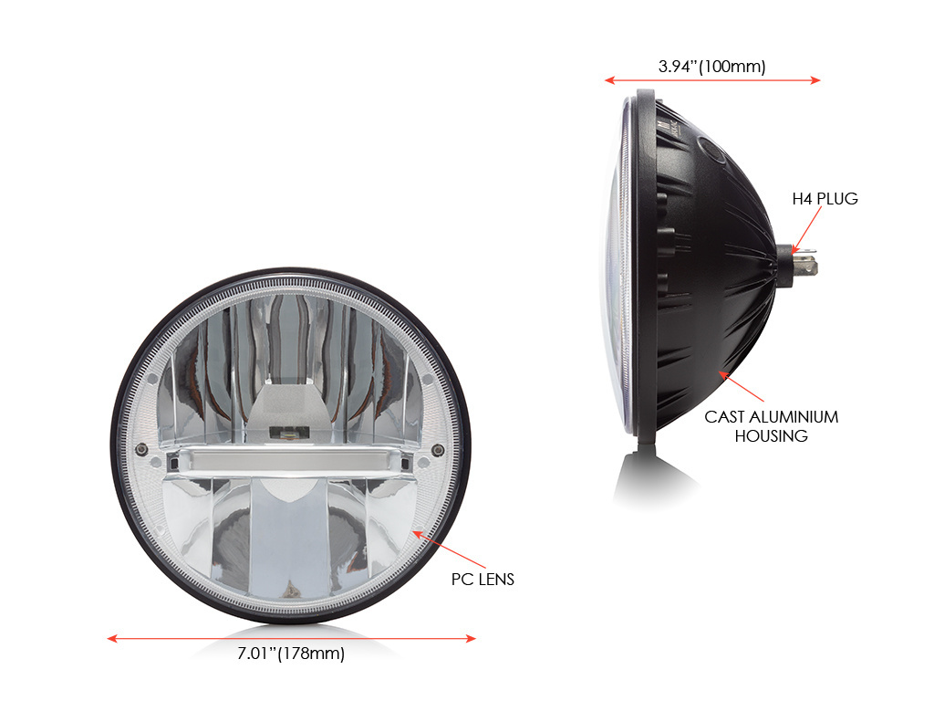 Deze koplamp insert is super helder. Met een klassieke look met moderne LED's. Past direct in de meeste 7 Inch koplamp behuizingen.