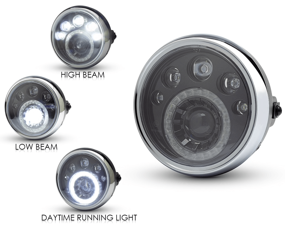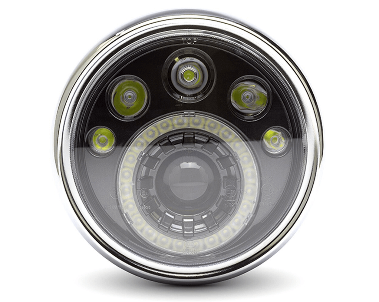 Hoogwaardige en heldere klassieke koplamp met een zijmontage met meerdere LED projectoren. Deze koplamp past bij kieskeurige kopers die op zoek zijn naar een kwaliteitsproduct.