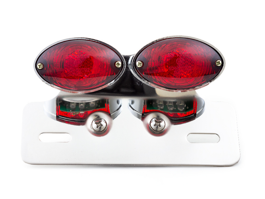 Verdubbel het plezier met de achterlichtmodule "Ohio Chrome", een complete achter-, rem- en kentekenplaatverlichting + houder. Voor die old school look op je café racer.