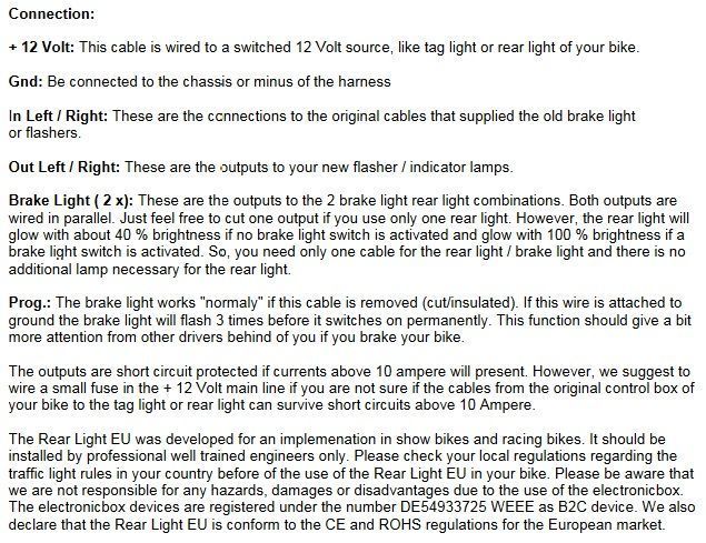 Bijna alle motoren in Amerika heeft een rem licht/knipperlicht combinatie. Daar werken 2 lampen zowel als rem en knipper licht. Hierdoor is het vaak lastig en duur om een geïmporteerde motor om te schakelen naar door de EU getelde eisen. Met dit systeem hoeft u zich daar geen zorgen om te maken en kunt u alles makkelijk en snel omzetten.