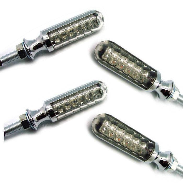 Set Aluminium LED Knipperlichten. Voelen mooi zwaar aan en zijn flink fel. Tevens is de afwerking chrome.