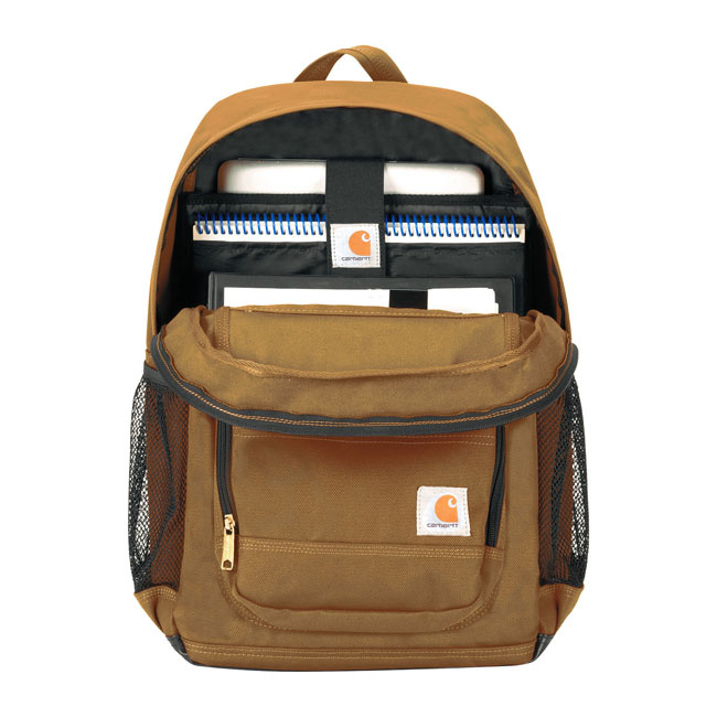 De Carhartt Classic Single Backpack heeft een inhoud van 27 liter en is gemaakt van duurzaam, waterafstotend 1200D polyester. De rugzak heeft een ruim hoofdvak met een 15-inch laptopsleeve, opbergvak, zijvakken van gaas en het kenmerkende Carhartt-label op de voorkant.