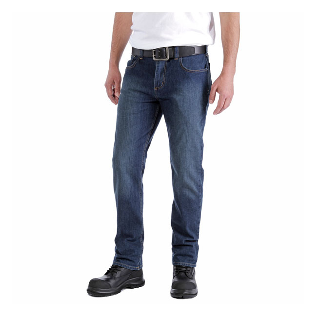 De Carhartt Rugged Flex Straight Fit Tapered Jeans zijn gemaakt van duurzaam, slijtvast denim met toegevoegde stretch voor meer bewegingsvrijheid. Ontworpen met een rechte pasvorm, taps toelopende pijpen en genoeg ruimte bij het zitvlak en de dijen, bieden ze comfort en duurzaamheid voor lange, zware werkdagen.