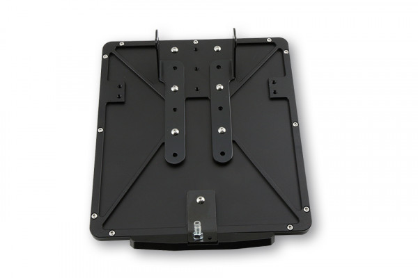 De lichtgewicht, slanke aluminium behuizing bestaat uit een basisplaat en een naadloos frame waarmee een 180x200 mm kentekenplaat nauwkeurig kan worden gemonteerd. De kentekenbehuizing kan vervolgens worden gemonteerd dankzij de boorgatcombinaties op de bestaande motorfiets kentekenplaathouder. Universeel voor bijna alle motormerken, modellen en bouwjaren.