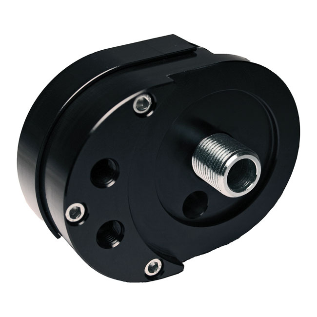 De Feuling Offset Oliefilteradapter is nodig bij het installeren van een oliekoeler op een Twin Cam. In plaats van een thermostaat heeft deze een overdrukventiel. Dit zorgt voor een ononderbroken, continue stroom met een consistente maximale koelcapaciteit.