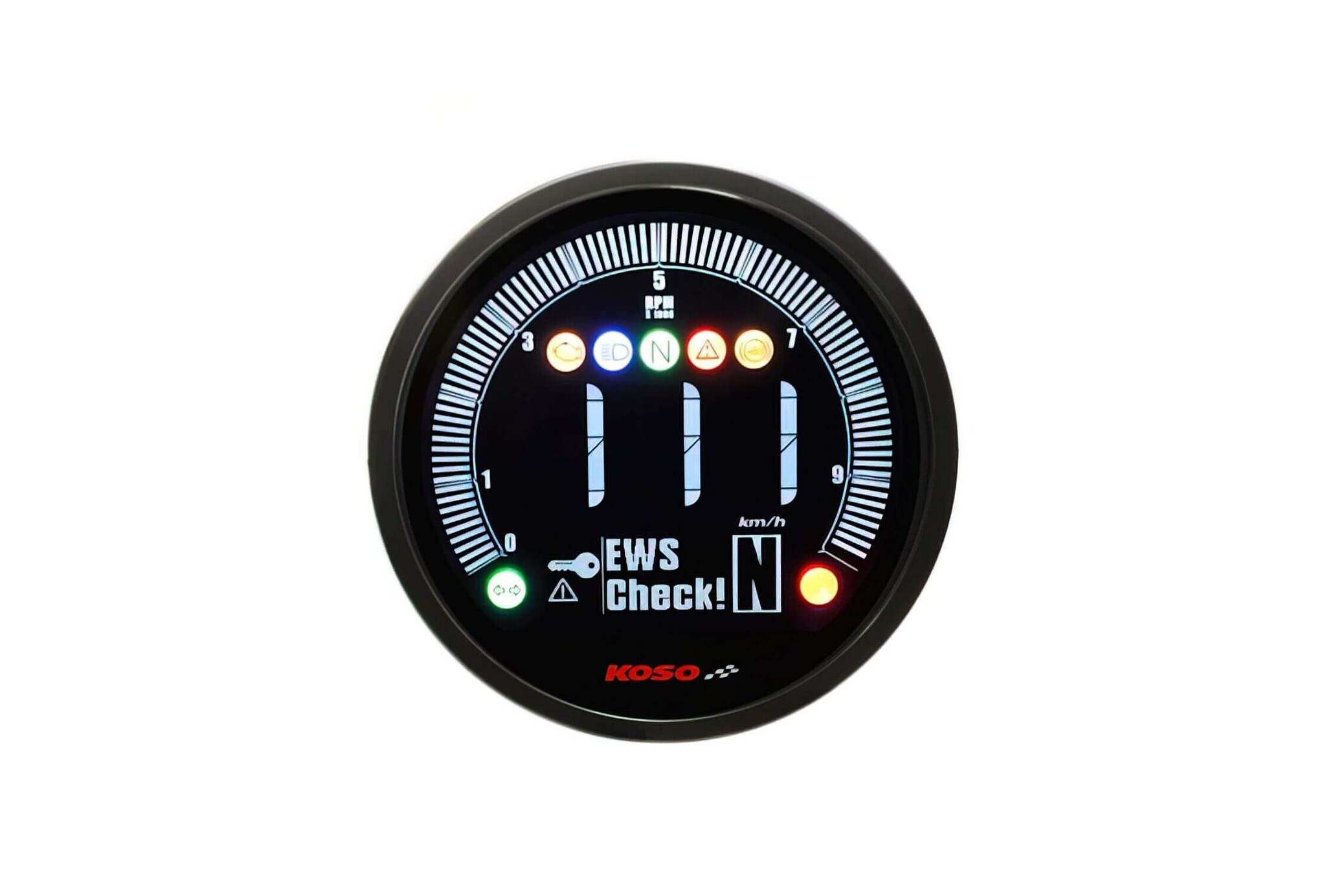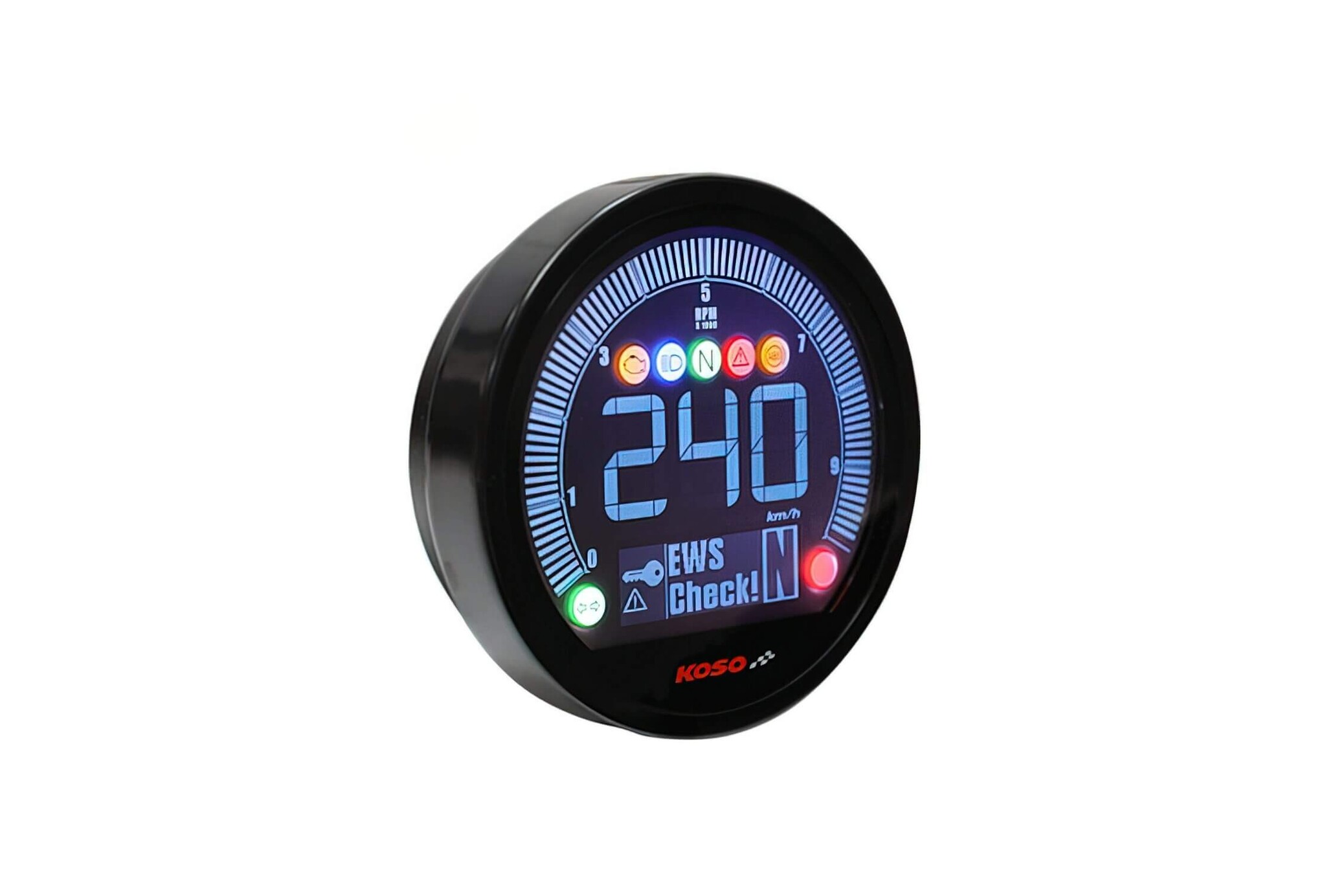 Zwart Koso DL-04 meter voor BMW R nineT vanaf 2017. Plug & Play gecombineerd instrument van Koso, ontworpen voor BMW R nineT vanaf 2017. Het display is eenvoudig en gemakkelijk af te lezen. Dankzij het compacte formaat past de snelheidsmeter op alle dashboards.