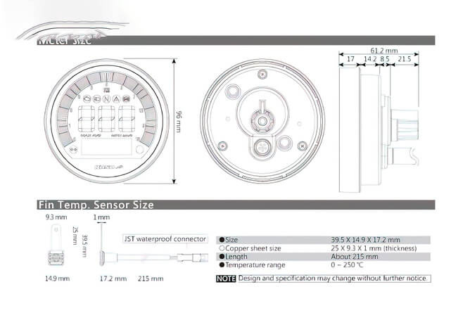 - Indicatoren: Snelheid, toerental, richtingaanwijzers, olie, temperatuur, brandstof, grootlicht, ABS, stationair